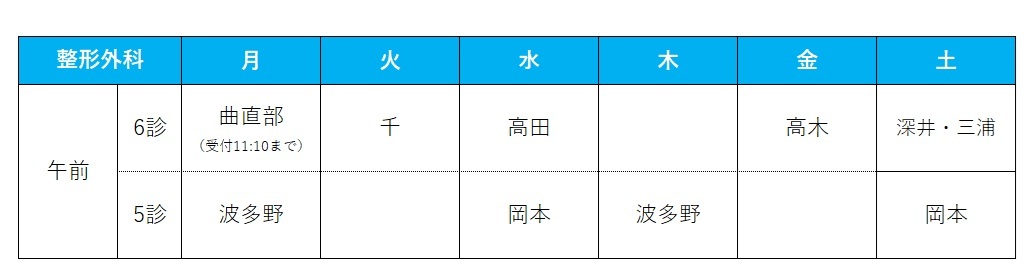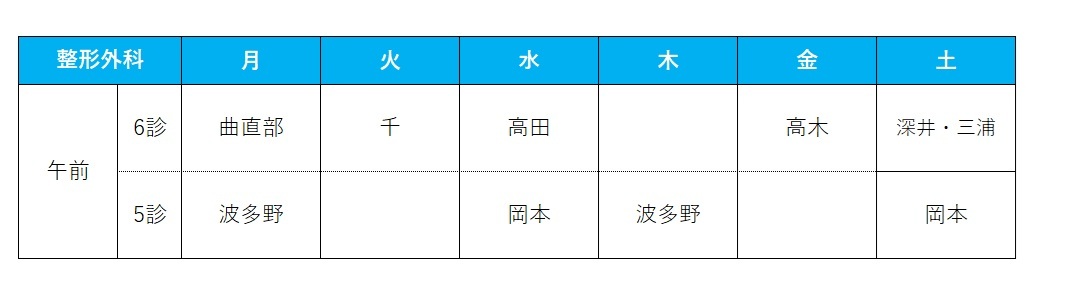 整形外科は現在、下記のスタッフにより診療を行っております。